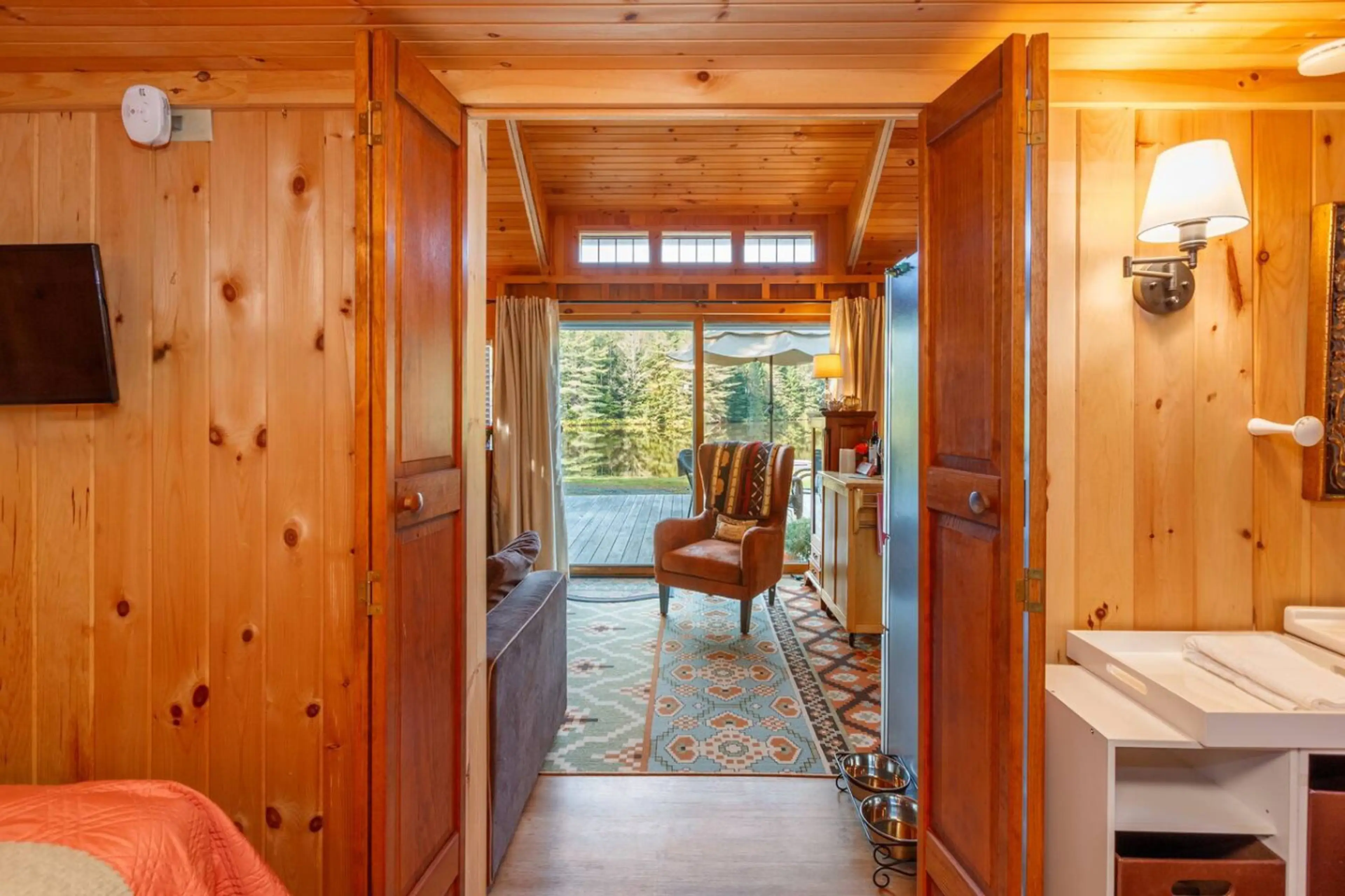Waterfront! Hot tub & dock with kayaks on private lake. Enjoy the screen pavilion with sofa & fire table and bright, wood lined cottage with all you need for a peaceful getaway-Japanese soaking tub, (small) Heat/AC, +fast wifi. Cook in the kitchen or grill in the beach side pavilion. Walk the tra...